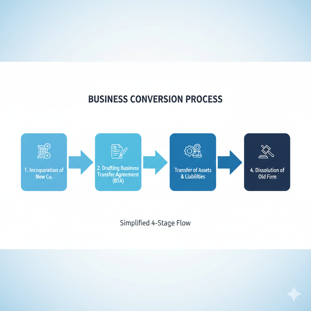 Consider “Vikas Enterprises,” a partnership firm in Pune manufacturing auto components. The partners, Vikas and Rohan, wanted to pitch for a large international contract that required a corporate structure. They incorporated “Vikas Precision Components Pvt Ltd” and transferred the firm’s entire business (assets worth ₹50 Lakhs and liabilities of ₹10 Lakhs) via the business transfer route. By doing this, they successfully secured the contract and limited their personal risk, which was previously tied to their personal assets.